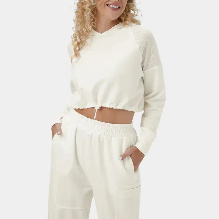 Plain Hoodie Custom Printing Drop Shoulder Women Crop Hoodies